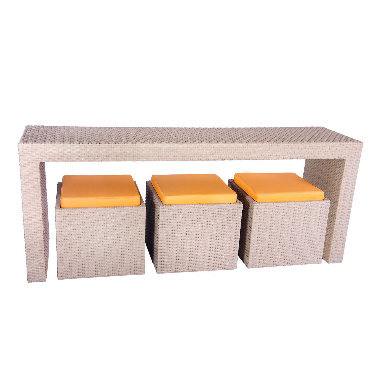 Aparador e Puffs - Estrutura de alumínio soldado, acabamento em pintura eletrostática, revestimento em fibra sintética virgem com alta proteção a raios UV garantindo maior durabilidade.