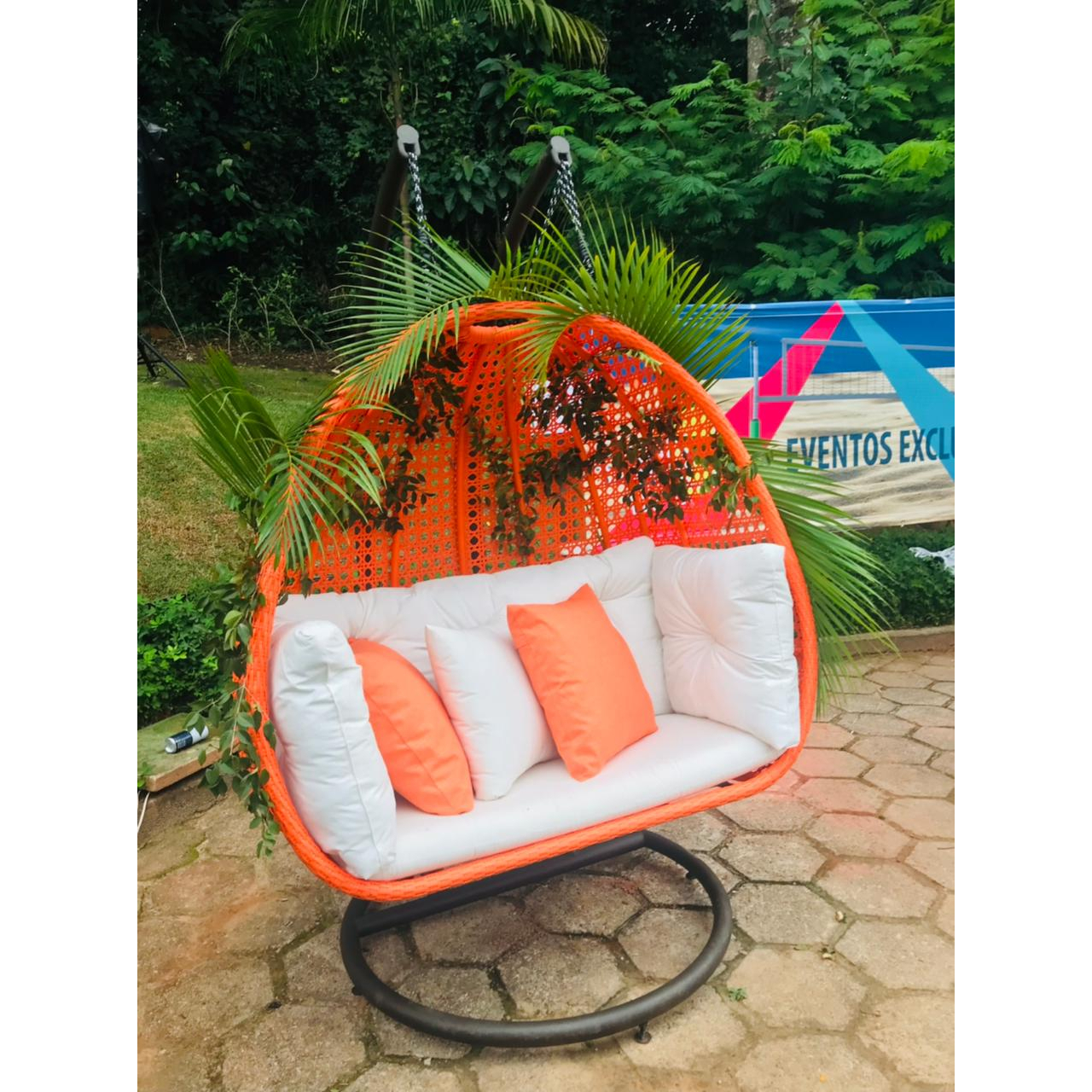 Estrutura de alumínio com acabamento em pintura eletrostática e revestimento em corda náutica ou tricô náutico.