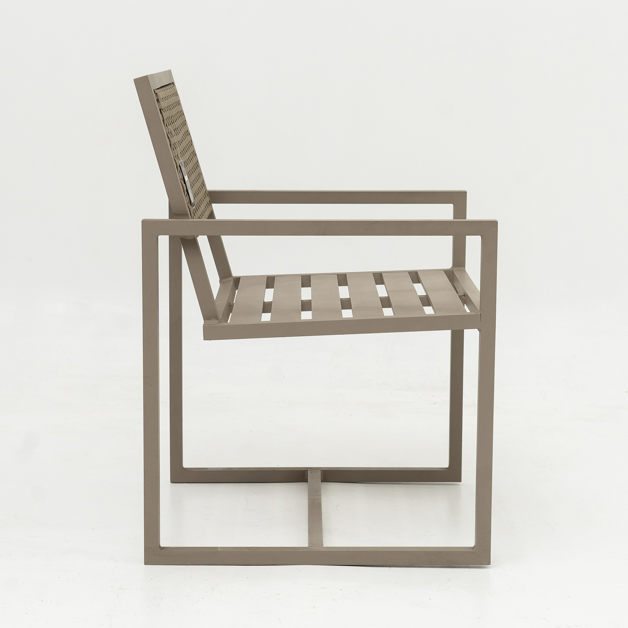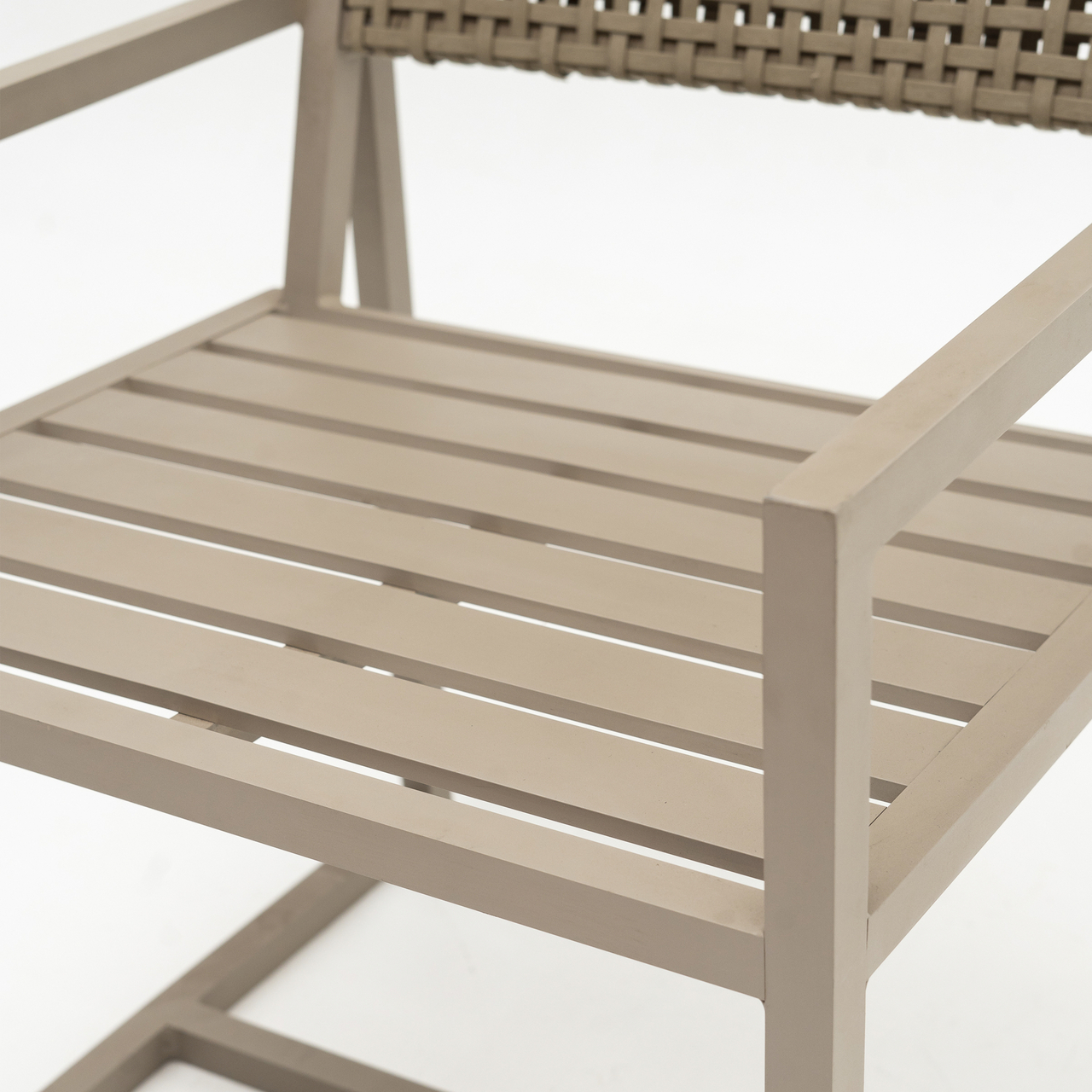 Estrutura de alumínio soldado com acabamento em pintura eletrostática e revestimento em fibra sintética no encosto.