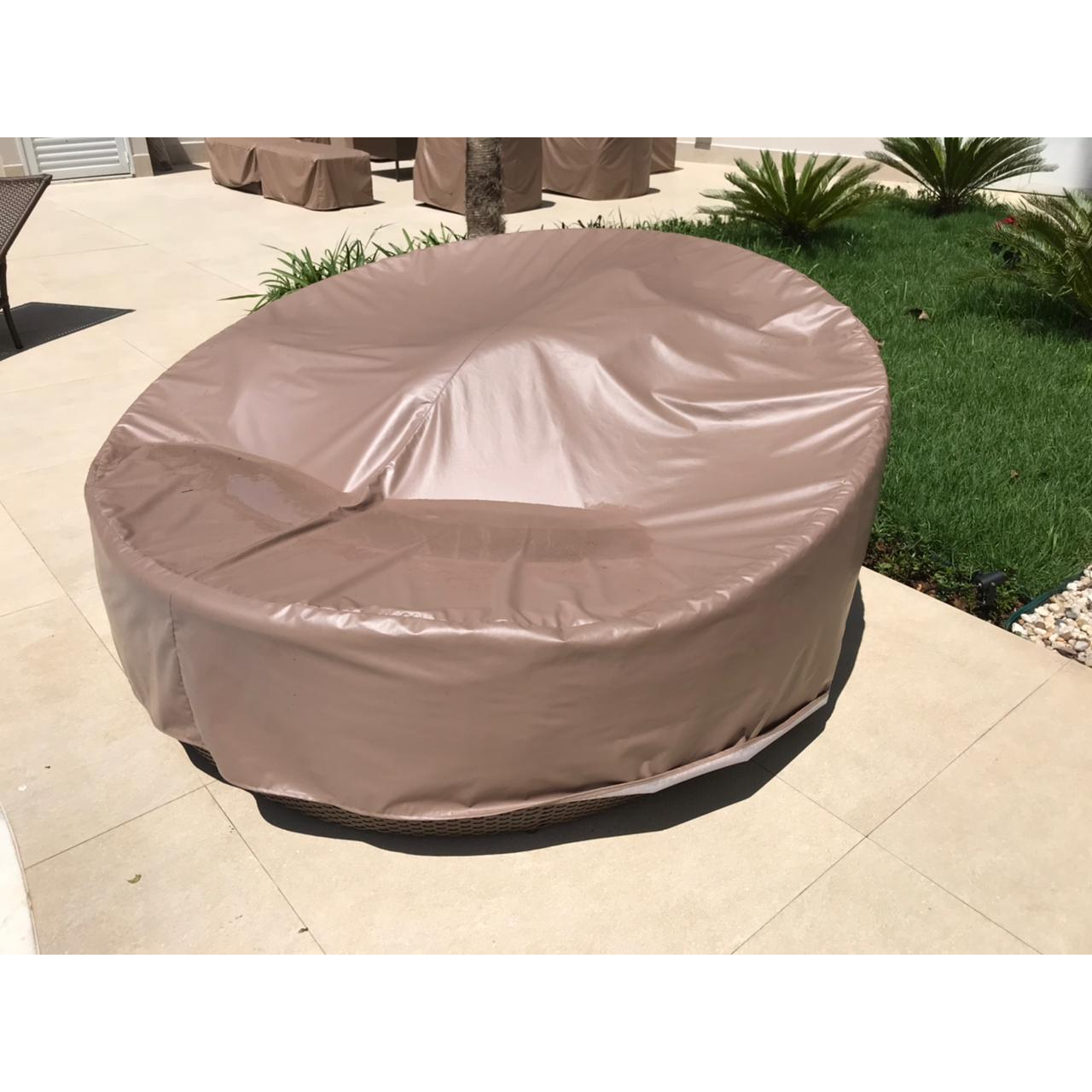 Capa para móveis em PVC com trama poliester. 83% de proteção à raios UV.