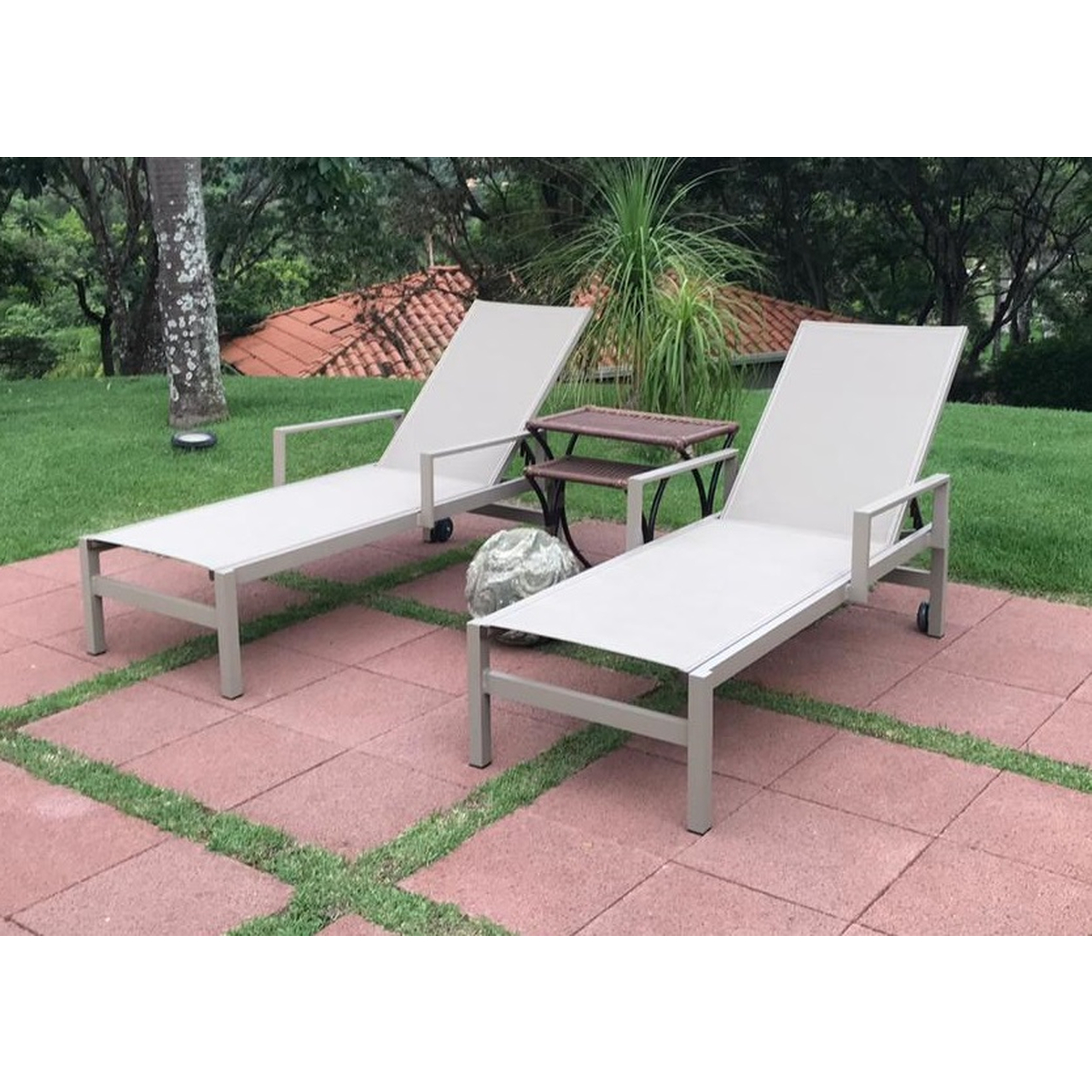 A espreguiçadeira Perfile Tela com Rodinhas possui estrutura em 100% alumínio com acabamento em tela importada da França que garante alta performance e atendendo aos mais exigentes requisitos. Ideal para uso em ambientes severos sem abrir mão do design, praticidade e conforto. Disponível em diversas cores.