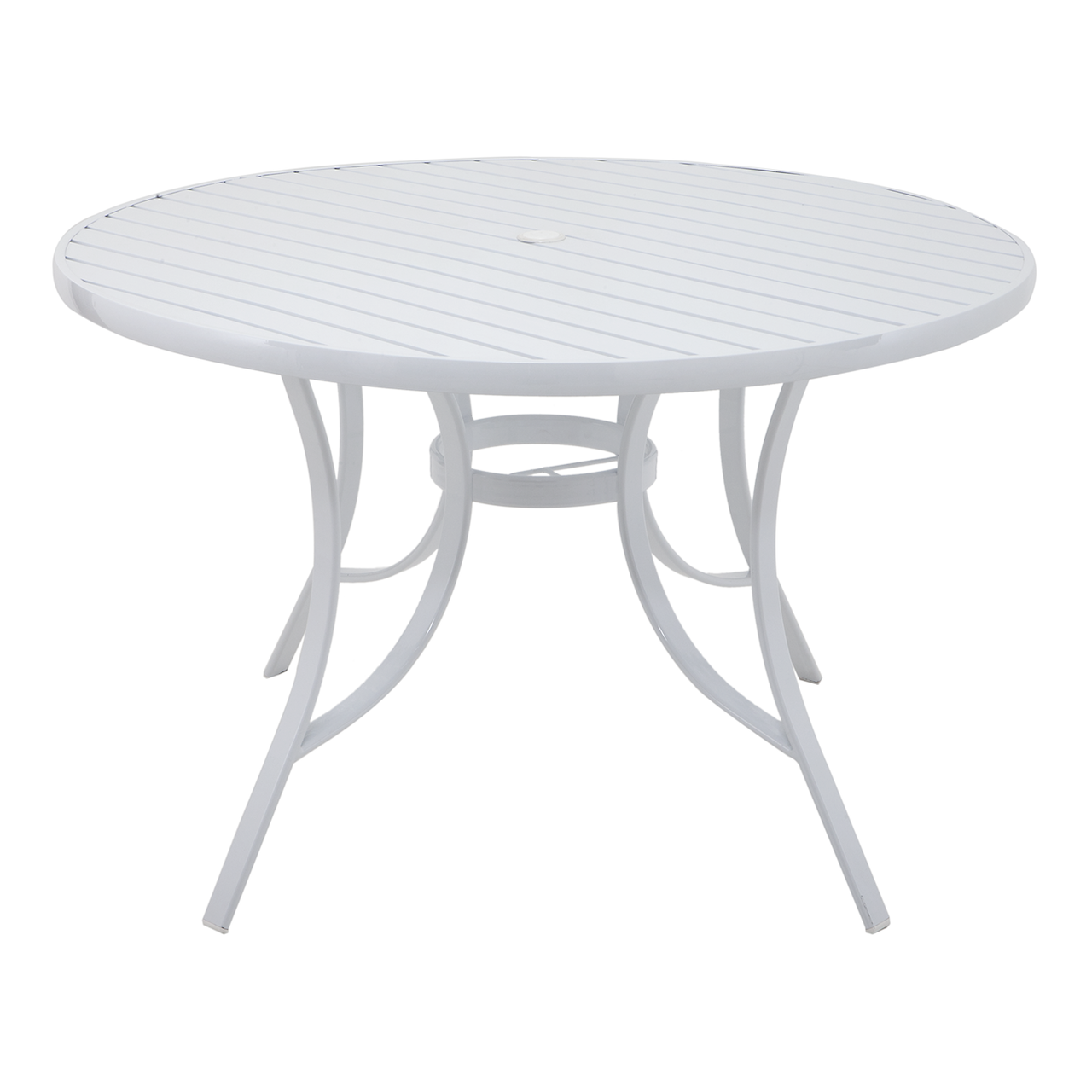 Estrutura 100% em alumínio com solda estrutural, dispensa o uso de parafusos em sua fabricação. Furação central para ombrelones (opcional) e acabamento em pintura eletrostática. Disponível em várias cores e tamanhos.