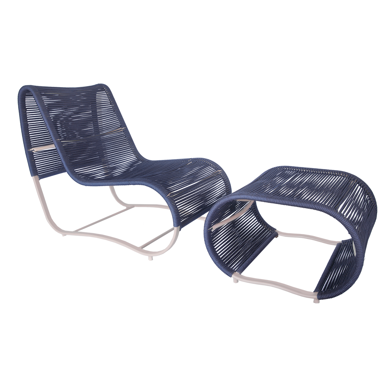 Armação de alumínio soldado com acabamento em pintura eletrostática e revestimento em corda náutica ou fibra sintética.