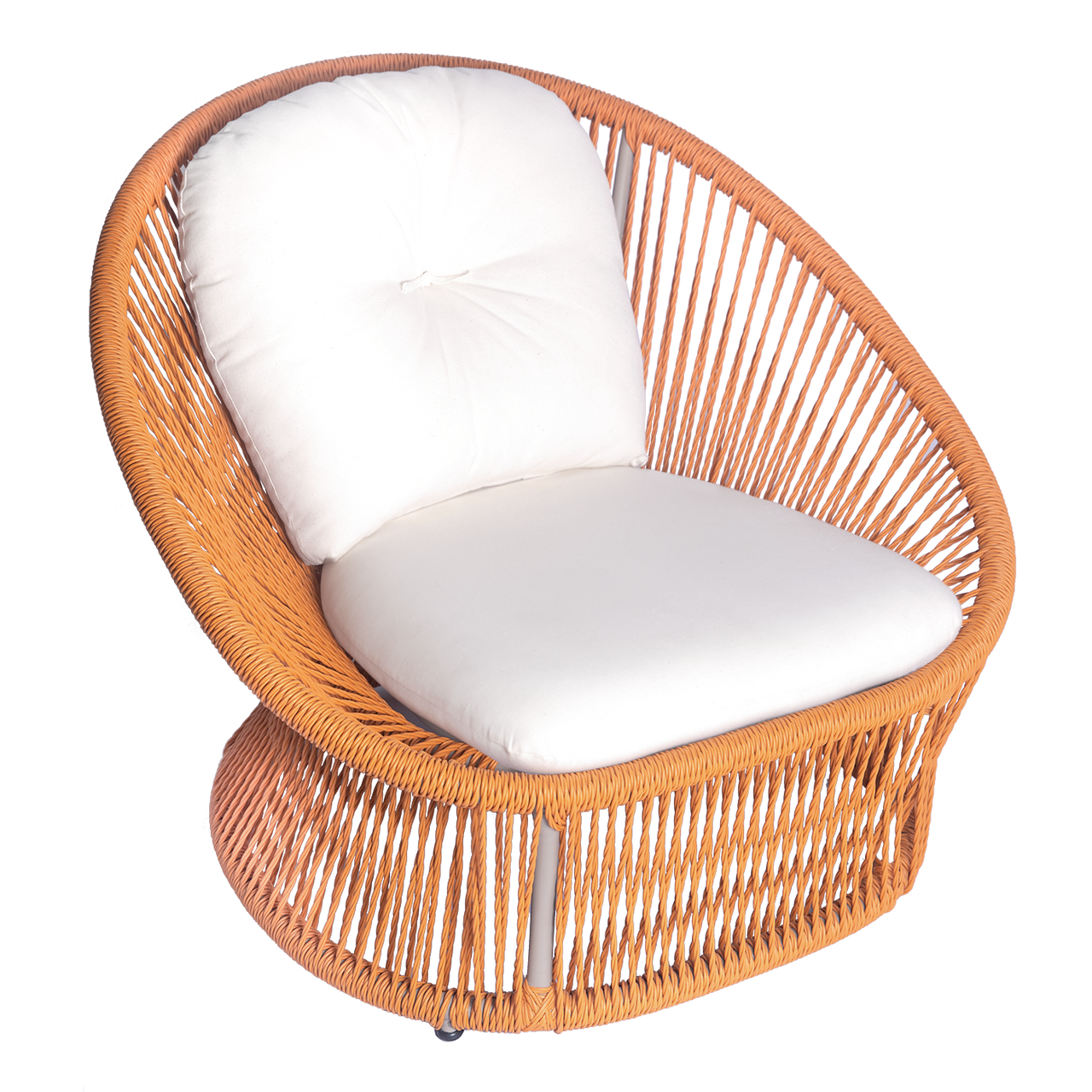 Armação de alumínio soldado com acabamento em pintura eletrostática e revestimento em fibra sintética ou corda náutica.