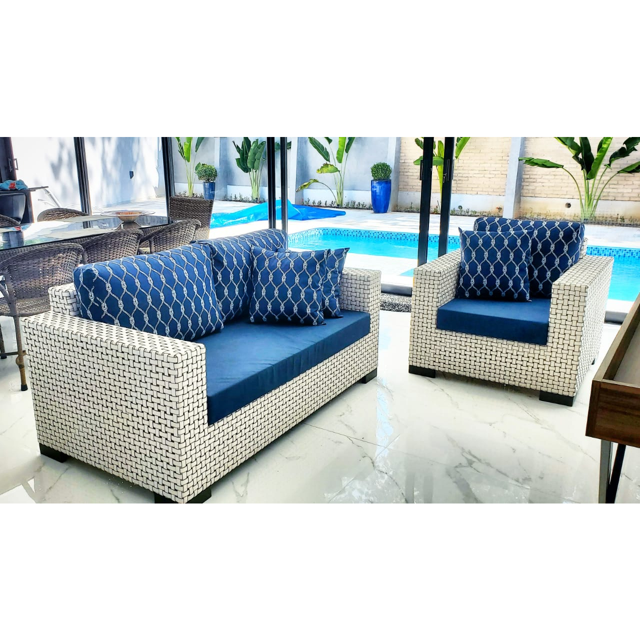 Armação de alumínio super resistente com solda estrutural, acabamento em pintura eletrostática e revestimento em fibra sintética virgem, permitindo maior durabilidade da peça.
